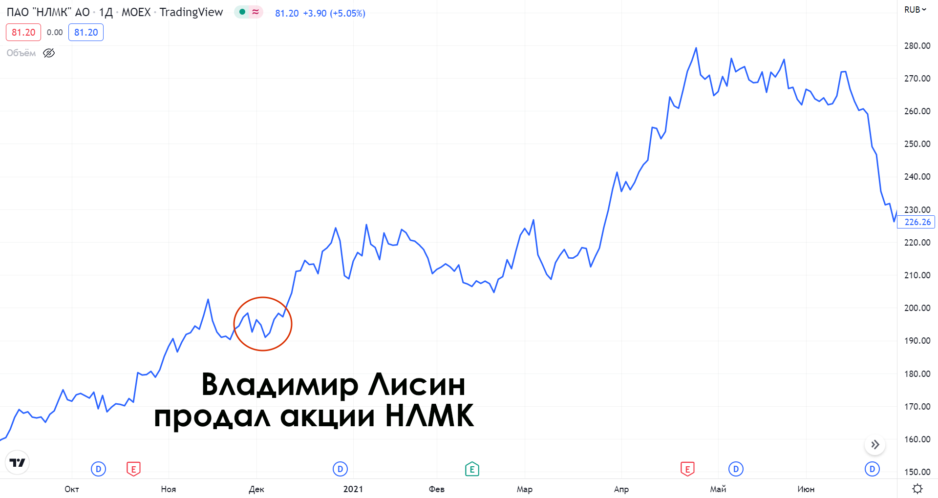Крупнейший акционер НЛМК Владимир Лисин периодически продает свои активы. Так, в начале декабря 2020 года акционер продал 2,1%. Проведение вторичного размещения поддержало котировки. Цель SPO заключалась в повышении привлекательности НЛМК для публичных инвесторов за счет увлечения ликвидности. Также это стало шагом к увеличению веса бумаг НЛМК в индексе MSCI.